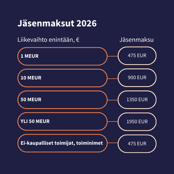 EastCham Finlandin jäsenmaksun suuruus määräytyy yrityksen liikevaihdon mukaan.