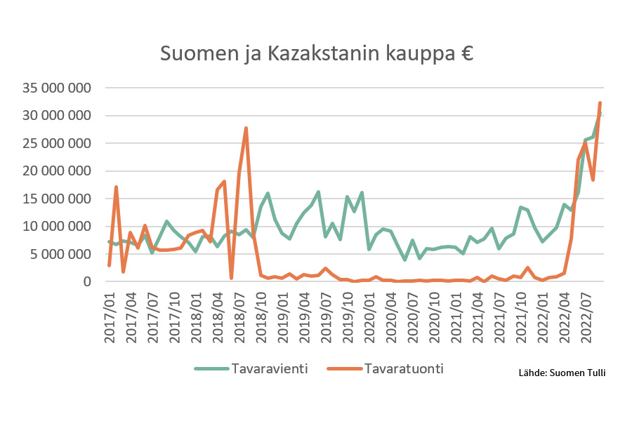 FIN KAZ tavarakauppa 1-9 2022 uutiskoko