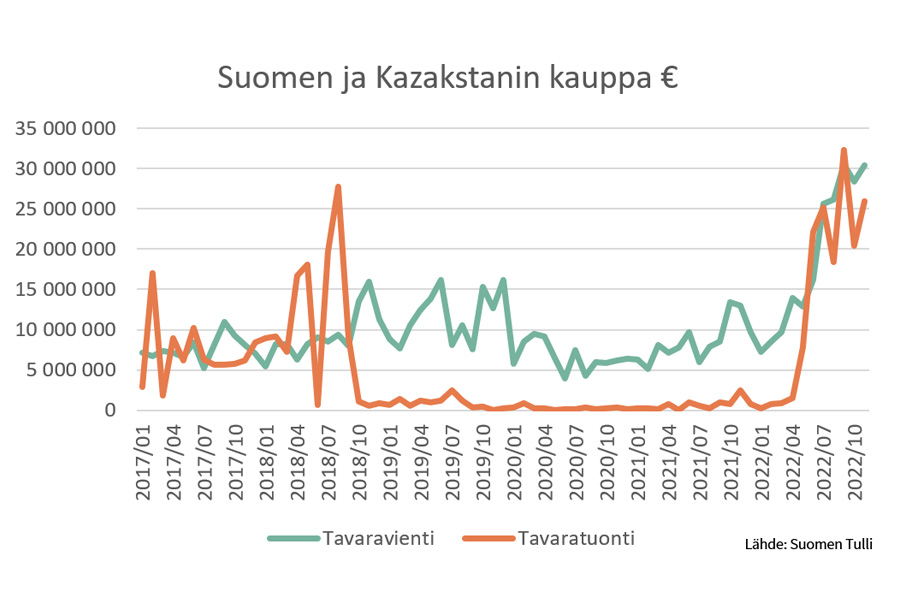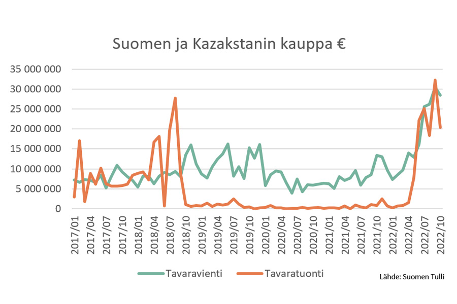 FIN KAZ tavarakauppa 1-10 2022 uutiskoko