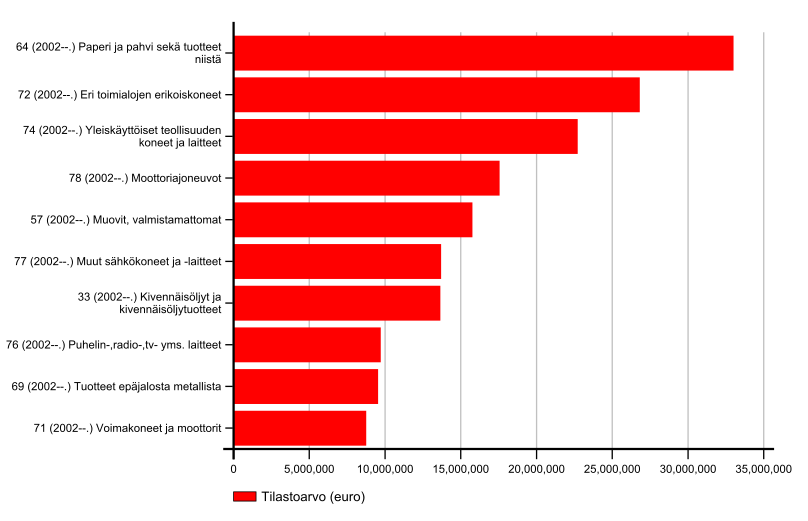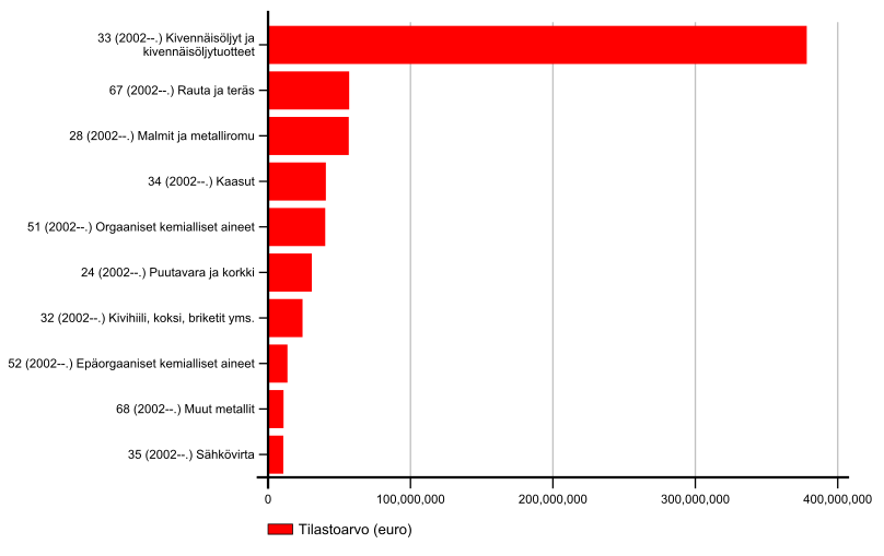 Tuonnin rakenne Suomesta Venäjälle 2016. Lähde: Tulli