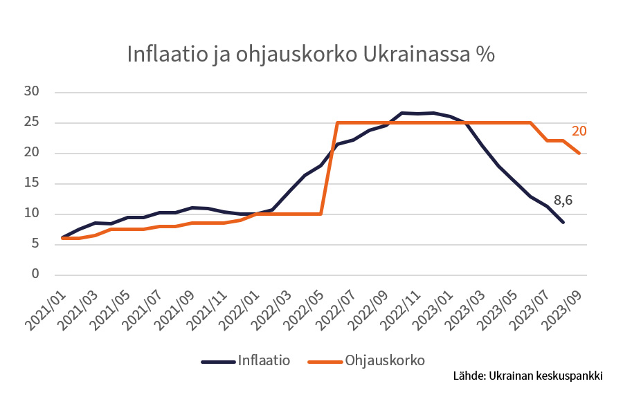 Inflaatio ja ohjauskorko Ukrainassa uutiskoko