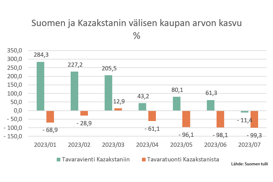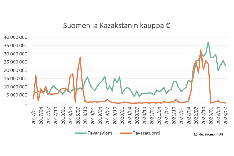 FIN KAZ kaupan kasvu 2023 uutiskoko